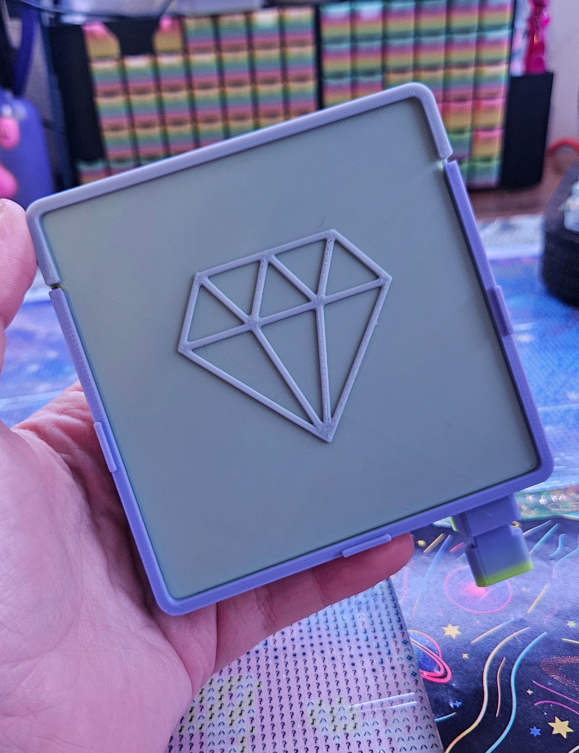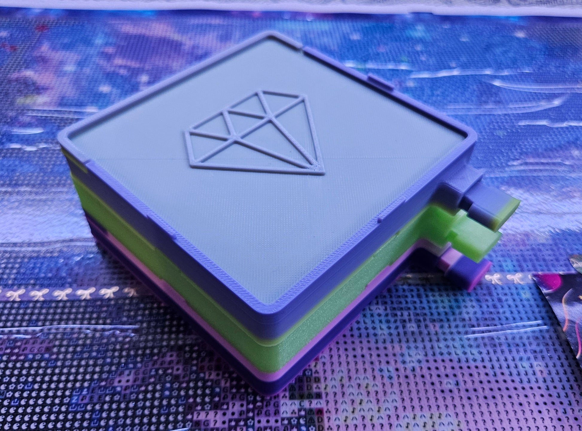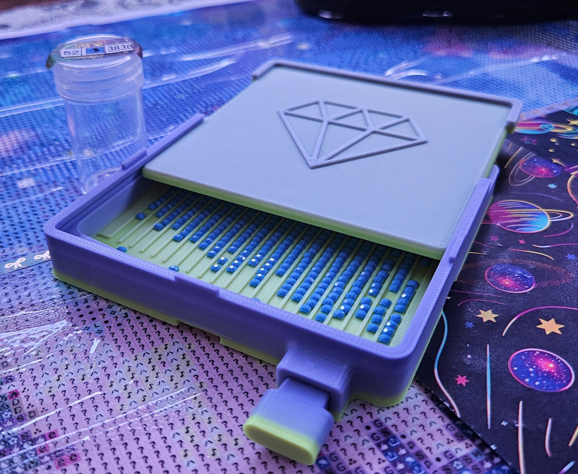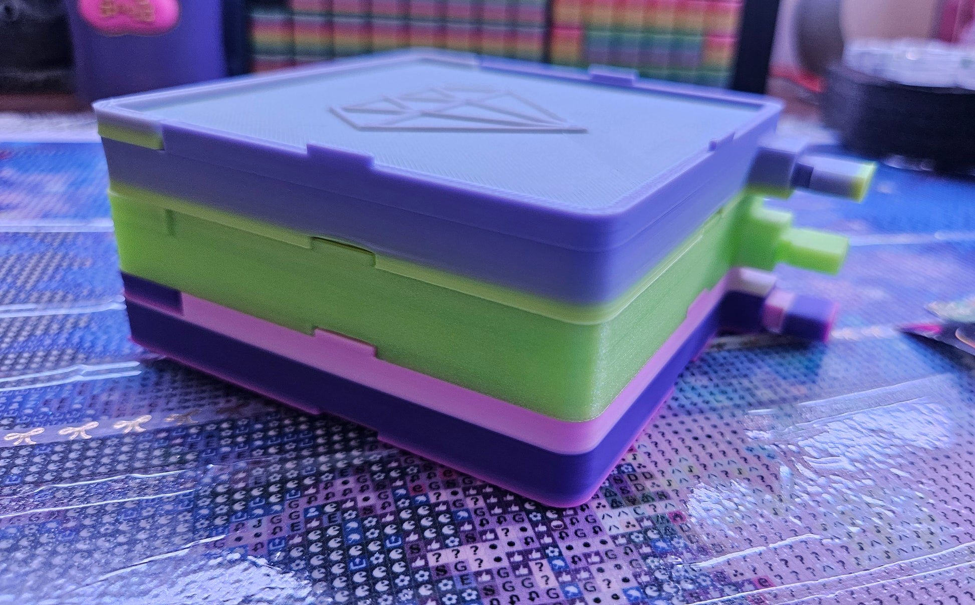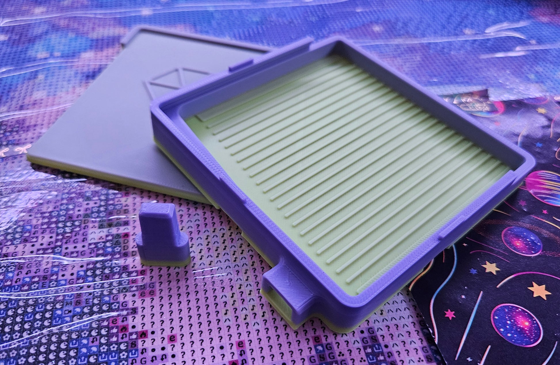 Stay organized while you create beautiful diamond art! Our 100x100mm Stacking Diamond Painting Tray is perfect for sorting and storing drills without cluttering your workspace. 3D printed for durability and easy stacking, these trays help you stay efficient and focused on your masterpiece. The ridged base lines up your drills neatly, and the stackable design saves space — making it a must-have for any serious crafter. ✨ Features: * 100x100mm sturdy square tray * Stack-able for compact storage * Smooth ridges for easy drill pickup * Lightweight and durable * Easy-pour spout design with stopper * Slide on lid to reduce spills
