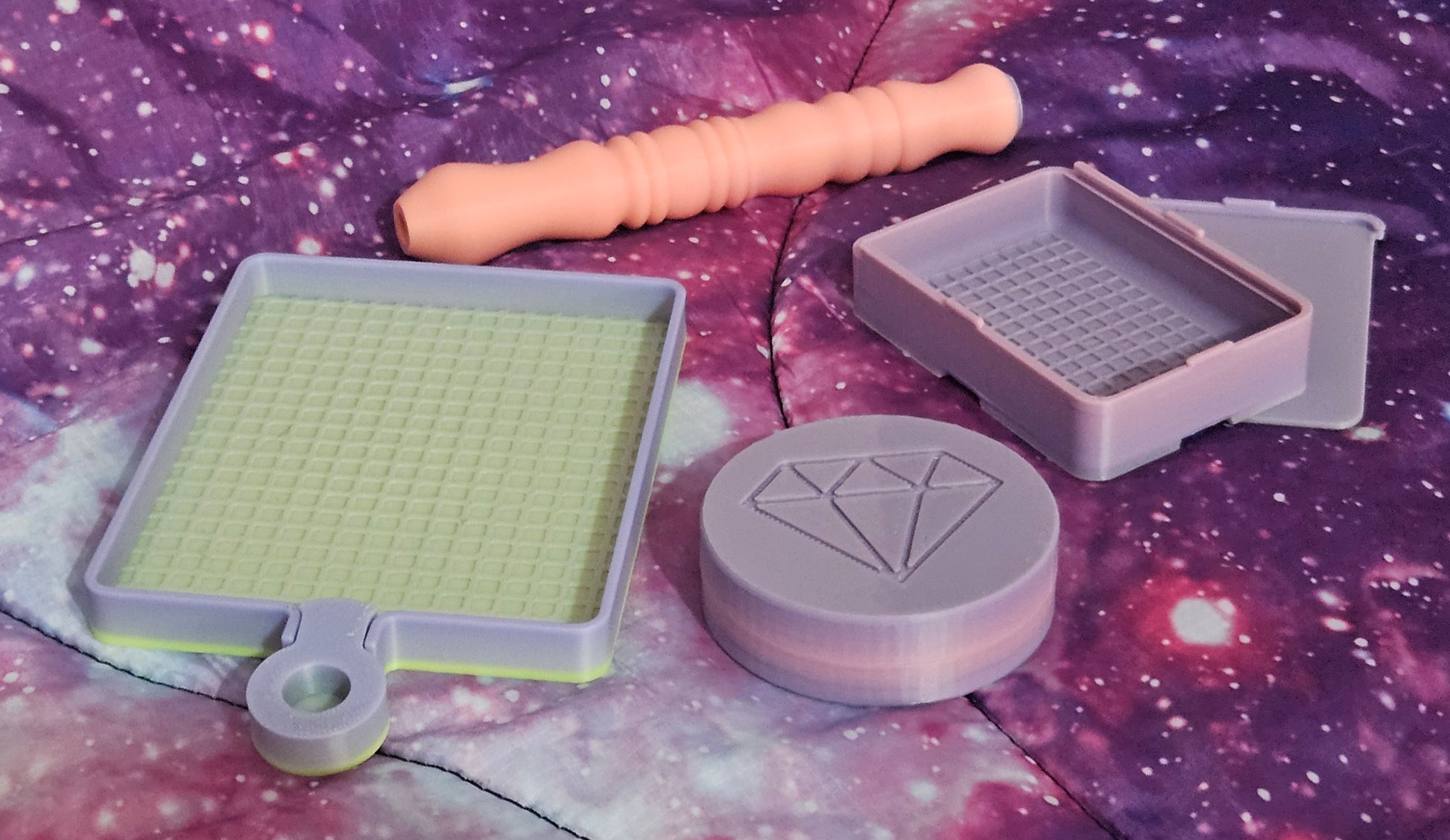 This pre-printed, ready to ship bundle of 3D printed diamond painting accessories includes:
