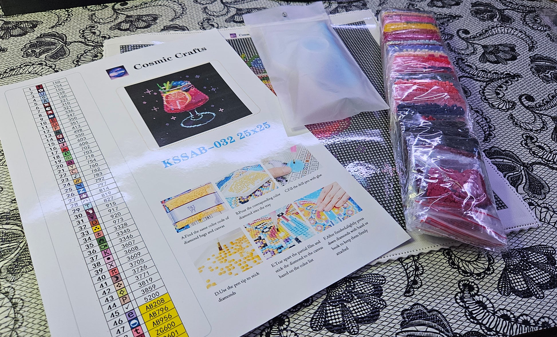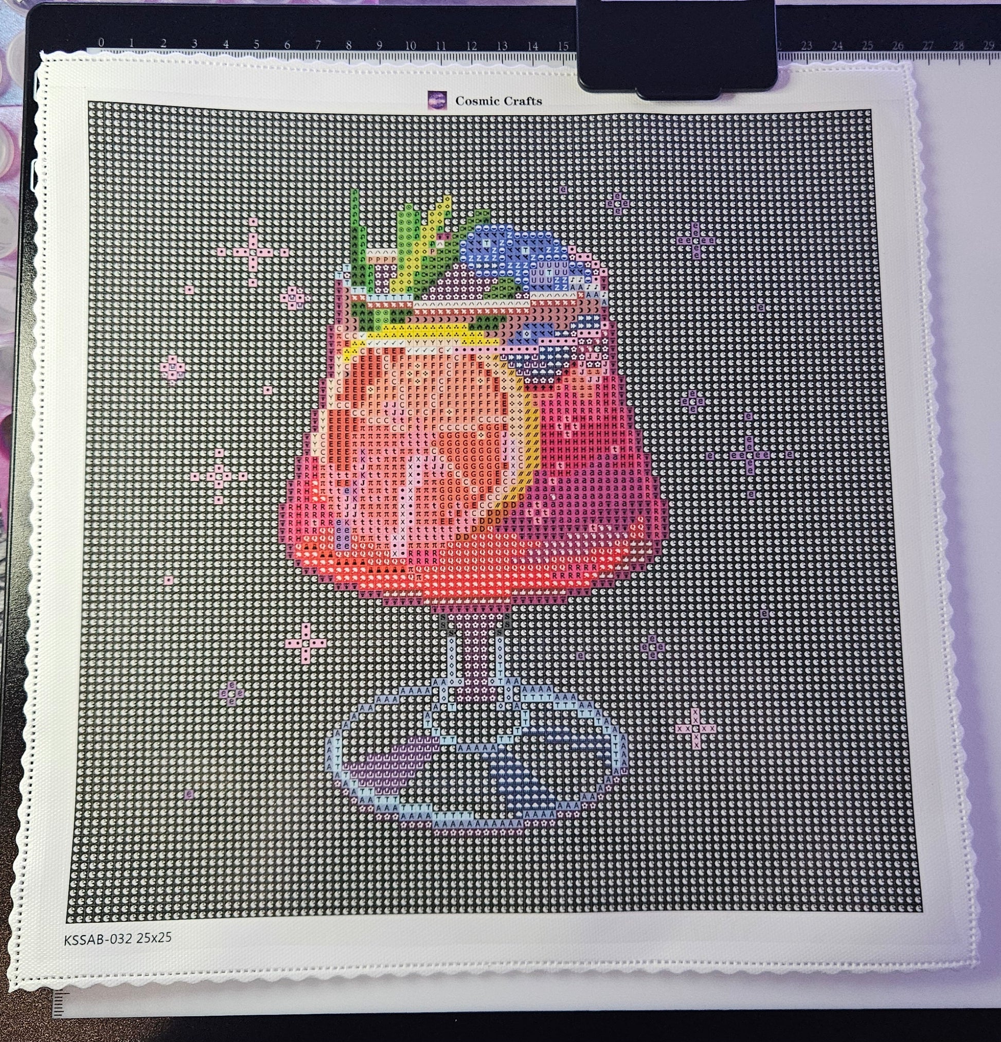 Cool, crisp, and bursting with sparkle—Berry Basil Elixir is a luscious drink design infused with juicy berries and vibrant green herbs. This refreshing artwork comes to life with square resin drills, enhanced by AB and fairy dust accents for a dazzling finish that catches the light like a summer breeze. Whether you're unwinding with a cozy craft session or gifting a little handmade magic, this full drill mini canvas makes it easy to create something beautifully bold and sweetly botanical.