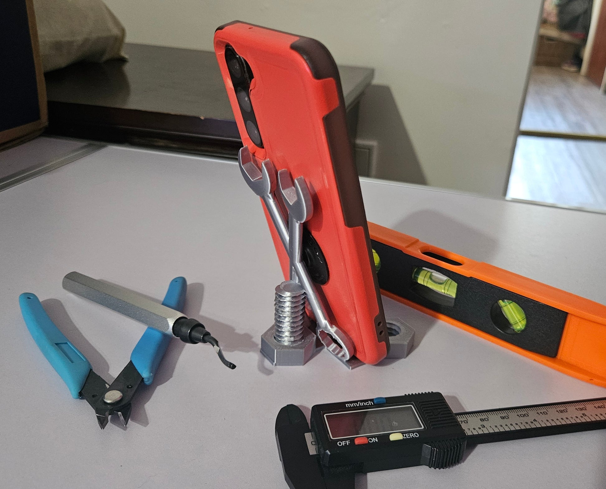 Turn your workspace or garage into a gearhead’s paradise with our Gearhead Phone Holder. Featuring two crossed wrenches that cradle your phone and accented with two front-mounted nuts, this piece is as bold as it is functional.