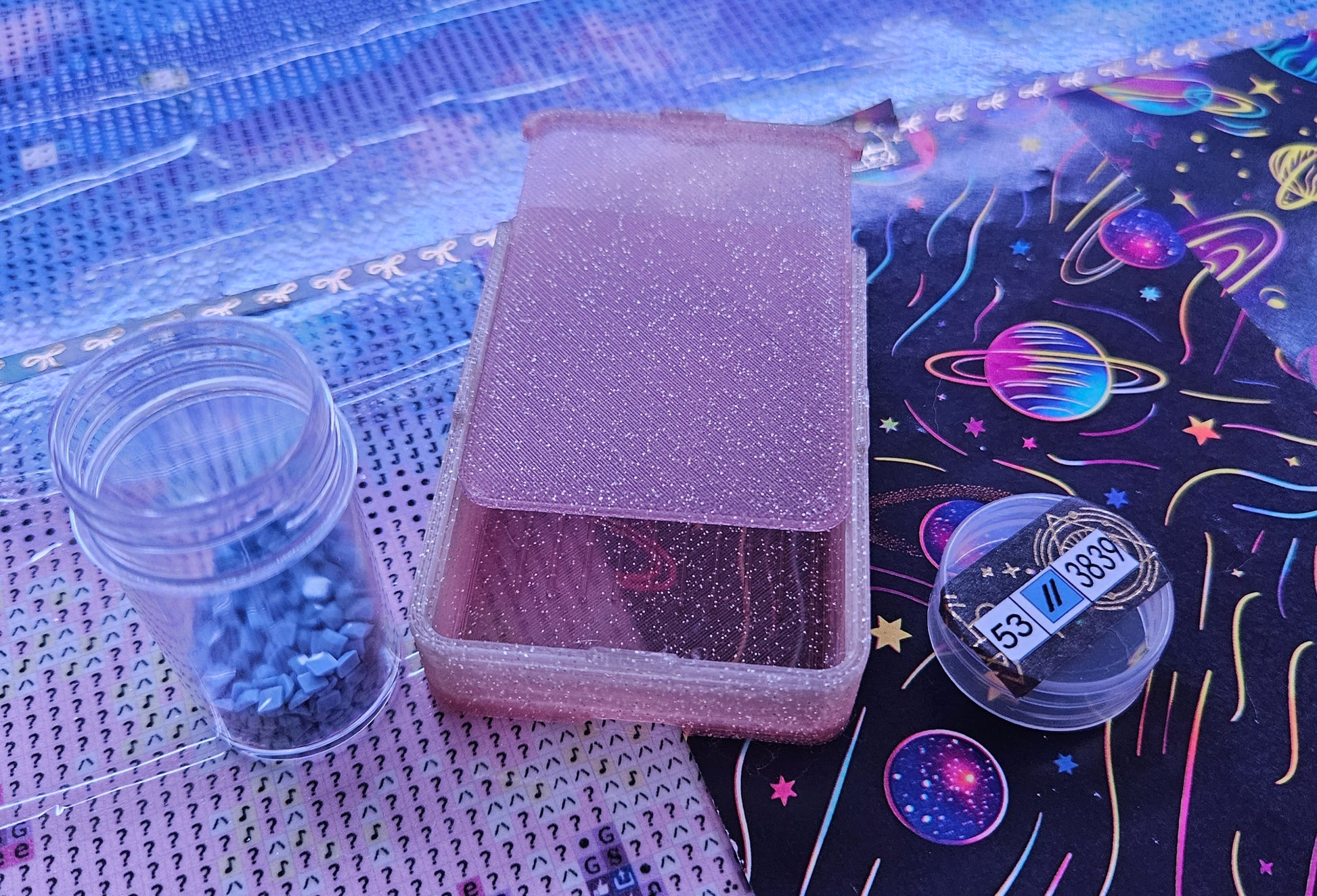Keep it simple and clean with our Small Diamond Painting Tray! This 3D printed, spout-less tray features standard drill lines for fast single and multi-placing. The compact size is perfect for small sections, detailed work, or travel crafting! Includes a smooth sliding lid to protect your drills and interlocking notches makes it easy to stack and store. This STAR Series tray will be stacking compatible in different configurations with our other STAR Series trays. ✨ Features: * Standard drill line design * Compact, spout-less shape * Sliding lid for secure storage * Lightweight and stack-able