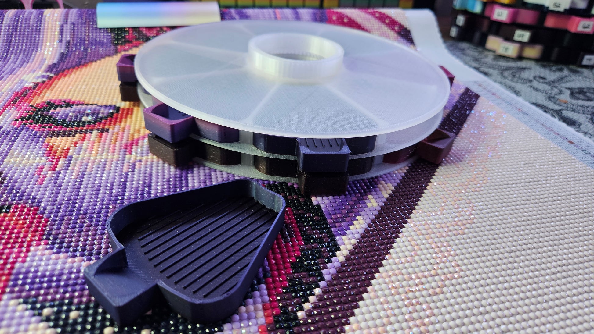 Introducing the Thin Line Edition of our popular Diamond Painting Carousel — a sleek, minimalist upgrade built for speed and efficiency. This streamlined design keeps all the function of the original, but with thinner layers and shallower trays for quicker access and easy spinning. Perfect for artists who prefer a lightweight, space-saving organizer that still looks beautiful on the craft table.